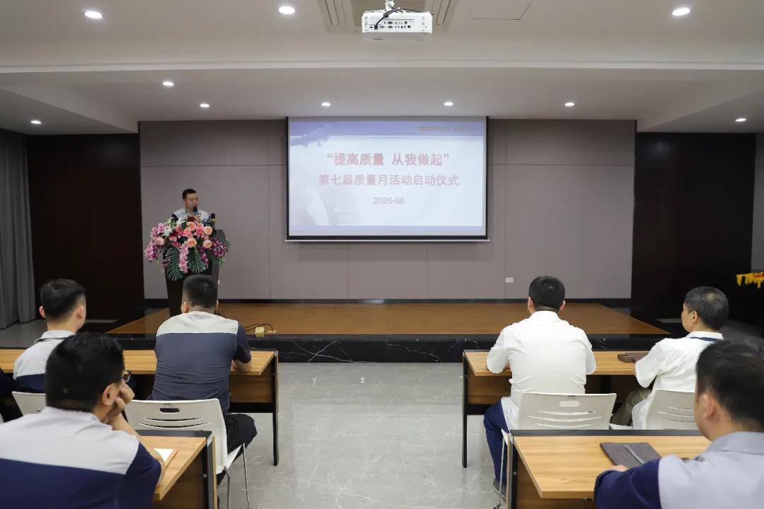 大会由质量部杨克楷主持,首先由质量部应建兴做质量工作汇报,在汇报中应建兴总结了今年和近几年的产品质量状况,通过多角度多方面分析了当前依旧存在的问题并提出一定建议,引起在场生产骨干们的高度重视。而后由技术部何芸汇报了本届质量月活动的各项重点攻关任务,并分别罗列了攻关的期限以激发员工踊跃参与;同时,本届质量月活动还加入了多场生产工作规范培训,以提升员工日常工作规范性,增加效率。