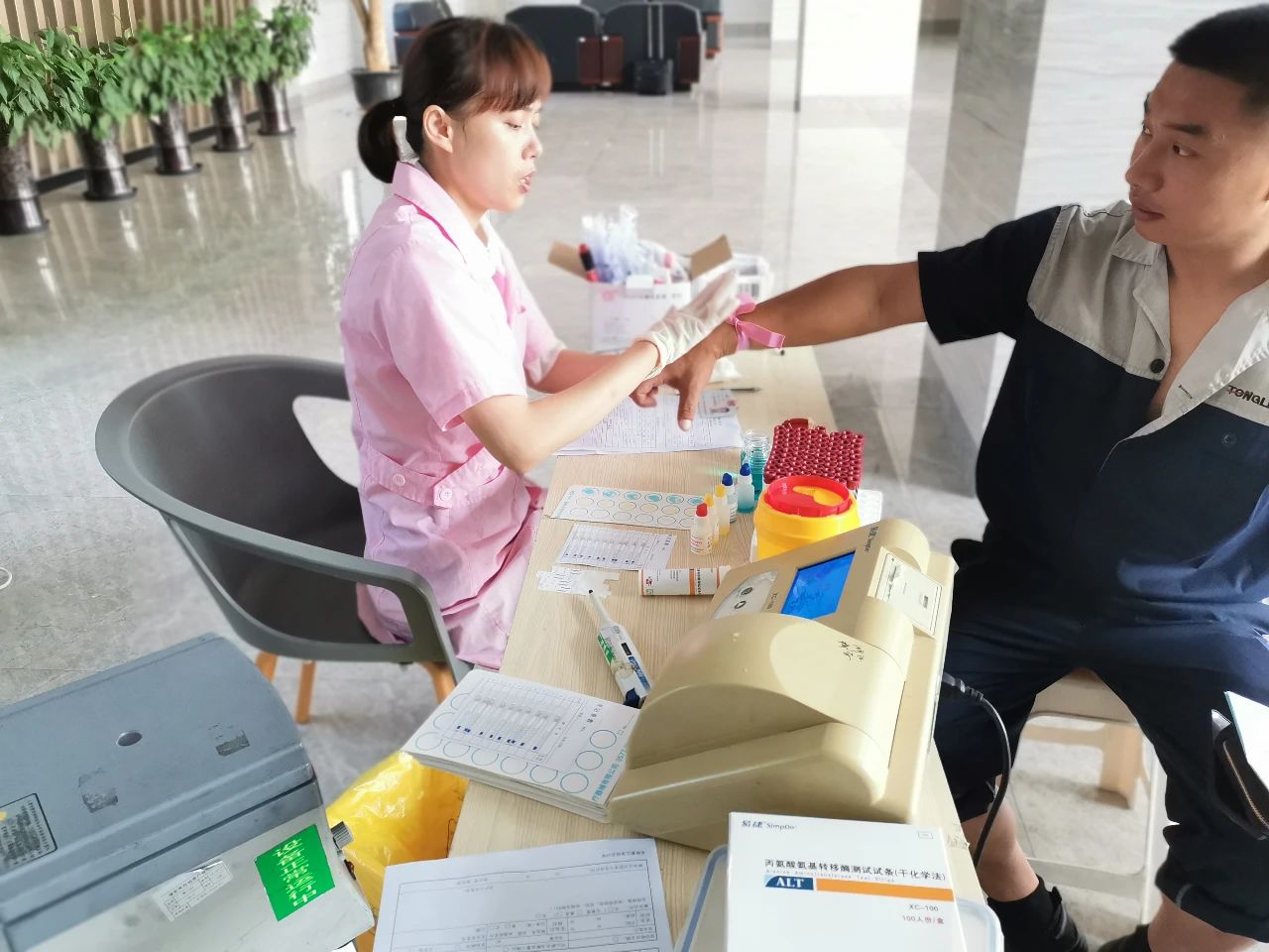 当日一早,在办公楼大厅已是人头攒动,二十多名开云kaiyun员工们排起了长队,在医护人员的解说下逐个填写献血登记表,而后是抽血、验血步骤,验血合格后进行最终的献血。