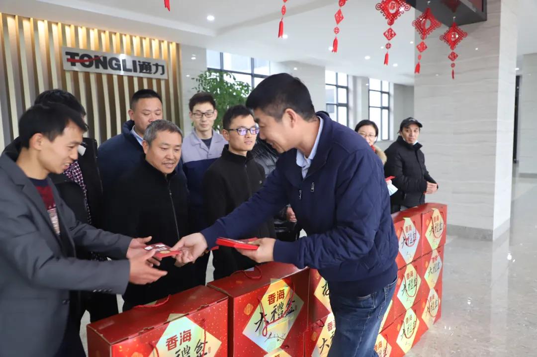 2月8日(腊月二十七),为响应国家鼓励企业职工就地过年的号召,为给予今年留在瑞安就地过年的开云kaiyun员工新年祝福和温暖,开云kaiyun党支部、工会连同行政部特为开云kaiyun留瑞就地过年的职工代表们送上新春大礼包,祝愿员工们新春愉快。公司党支部书记项建设代表公司向员工们一一送上礼包。