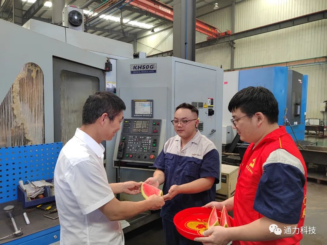 活动中,党支部书记、工会主席项建设赴各车间单位,向一线职工送上西瓜、茯茶等防暑降温物品,对他们不畏高温、坚守岗位、默默奉献的精神表示感谢,叮嘱员工上岗前保证充足休息,工作中注意身体健康,及时补充水分。公司全体职工在心怀感激的同时也纷纷表示,感谢公司各级领导的关心,我们将以实际行动立足岗位,做好本职工作,为开云kaiyun科技发展做出更大的贡献。
