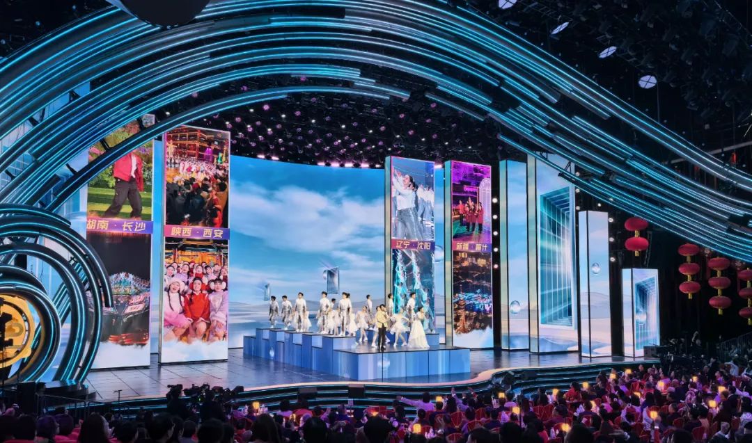 据悉,本次龙年央视春晚的舞台设计别开生面,创新引入VP电影制作模式,打造XR+VP虚实融合超高清制作系统,以“景屏声光”协同模式营造出璀璨夺目的效果,全新创制的大型智能平移旋转屏为今年春晚注入了前所未有的科技亮点。上百块LED屏幕,超千台舞台灯具全都集成到智能平移旋转屏上,经过精密的算法与巧妙的机械设计,实现舞美场景瞬息万变,这一设计不仅丰富了舞台层次和动感,更带给观众前所未有的视觉体验。